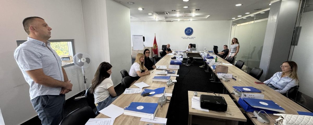 – 30. jul 2025. godine, u Podgorici, u organizaciji Centra za obuku u sudstvu i državnom tužilastvu, u okviru teorijskog dijela Programa inicijalne obuke, nakonrealizovanog V i VI modula obuke iz krivičnopravne materije, čije teme su optužnica / preispitivanje optužnice, glavni pretres i presuda, održana obuka po metodu:“Simulacija krivičnog suđenja”. Navedenu obuku je u svojstvu predavača realizovala sutkinja Vrhovnog suda Crne Gore, g.đa Milenka Seka Žižić, a istoj je prisustvovalo devet kandidata/kinja za sudije osnovnih sudova.
