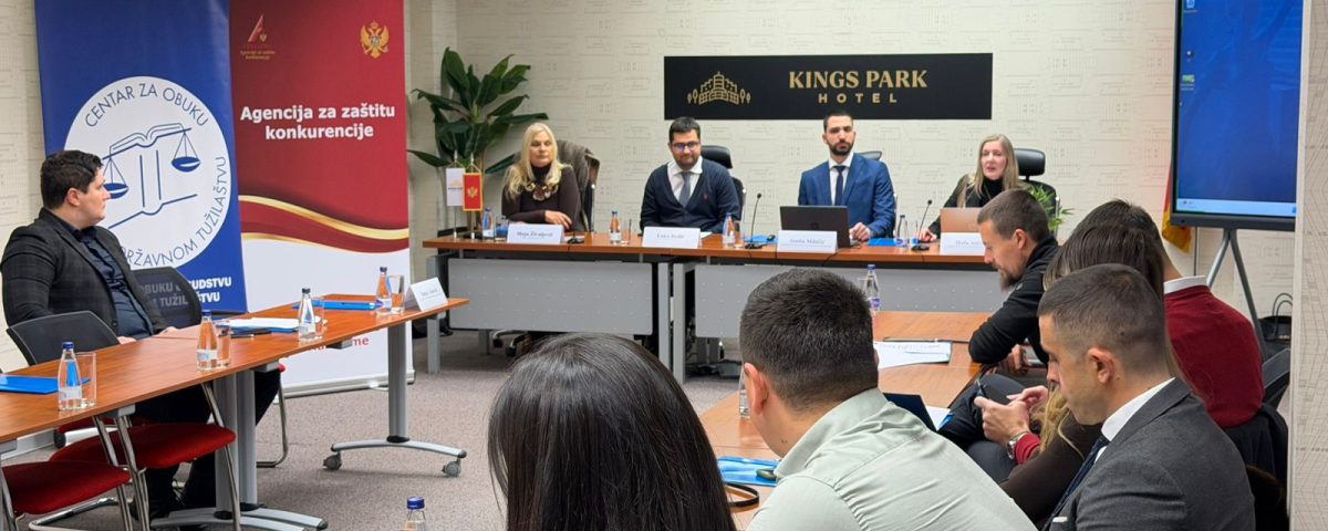 -16. decembar 2025. godine – Podgorica, Centar za obuku u sudstvu i državnom tužilaštvu u saradnji sa Agencijom za zaštitu konkurencije organizovao je okrugli sto  na temu “Zaštita prava konkurencije i državna pomoć”. Okrugli sto je sproveden u okviru Programa za kontinuiranu obuku sudija i državniih tužilaca za 2025. godinu i bio je usmjeren na unapređenje stručnih znanja i razmjenu iskustava učesnika i učesnica u primjeni pravila konkurencije i nadzor nad državnom pomoći, uz osvrt na savremene izazove i praksu relevantnih nacionalnih i evropskih institucija. U uvodnom dijelu učesnicima se obratila gđa Maša Adžić, direktorica Sekretarijata Centra za obuku u sudstvu i državnom tužilaštvu kao i gdin Luka Dedić, načelnik odjeljenja za međunarodnu saradnju i projekte u Agenciji za zaštitu konkurencije. Predavači na obuci bili su: gdin Siniša Milačić, načelnik Odsjeka za naknadnu kontrolu državne pomoći u Agenciji za zaštitu konkurencije, gđa Sanja Vešović, načelnica Odsjeka za utvrđivanje zabranjenih sporazuma u Agenciji za zaštitu konkurencije i gđa Maja Živaljević, sutkinja u Višem sudu za prekršaje Crne Gore. Teme o kojima se govorilo i diskutovalo bile su sljedeće: Kontrola dodijeljene državne pomoćiPovrede konkurencije na tržištu; Politika konkurencije sa akcentom na zabranjene sporazume i član 101 Ugovora o funkcionisanju EU sa pregledom praktične primjene zemalja u okruženju i Evropskog suda pravde. Obuci je prisustvovalo ukupno 7 učesnika/ca (4 sudija/sutkinja i  3 savjetnika/savjetnica u sudu).