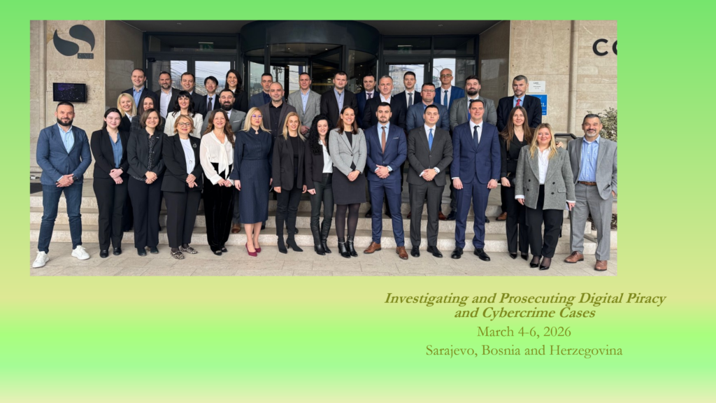 – 04–06. mart 2026. godine – Sarajevo/Bosna i Hercegovina, U okviru Međunarodnog programa za borbu protiv hakovanja i zaštitu intelektualne svojine (ICHIP), a posredstvom Programa Biroa Stejt Dipartmenta za borbu protiv međunarodne trgovine narkoticima i sprovođenje zakona (INL), Ambasade Sjedinjenih Američkih Država u Crnoj Gori, organizovana je regionalna radionica na temu „Istraživanje i krivično gonjenje predmeta digitalne piraterije i sajber kriminala“. Radionica je realizovana kao trodnevni program i okupila je tužioce i stručne saradnike – forenzičare iz Bosne i Hercegovine, Srbije, Hrvatske i Crne Gore, sa ciljem jačanja kapaciteta pravosudnih organa za efikasno otkrivanje, dokazivanje i krivično gonjenje krivičnih djela iz oblasti digitalne piraterije i sajber kriminala. Program radionice bio je usmjeren na unapređenje znanja i praktičnih vještina u oblasti prikupljanja, obezbjeđenja i analize digitalnih dokaza, sprovođenja onlajn istraga, finansijskih istraga povezanih sa kriptovalutama, kao i primjene savremenih tehnika krivičnog gonjenja u predmetima visokotehnološkog kriminala. Poseban akcenat stavljen je na razumijevanje strukture Interneta i digitalnih tragova, metode prikupljanja elektronskih dokaza, identifikaciju najnovijih trendova u oblasti digitalne piraterije, kao i na pravne elemente i izazove u vođenju predmeta u vezi sa povredom autorskih prava, sa osvrtom na sudsku praksu Sjedinjenih Američkih Država. Učesnicima su predstavljene napredne istražne tehnike koje obuhvataju primjenu otvorenih izvora informacija, analizu mrežnog saobraćaja i korišćenje specijalizovanih softverskih alata za praćenje digitalnih aktivnosti. Posebna pažnja bila je posvećena finansijskim istragama, uključujući praćenje tokova novca putem tradicionalnih platnih sistema i transakcija izvršenih korišćenjem kriptovaluta, kao i identifikaciji digitalnih servisa koji se koriste za distribuciju piratskog sadržaja. U okviru studija slučaja predstavljeni su primjeri složenih međunarodnih istraga digitalne piraterije, sa posebnim osvrtom na operativne metode identifikacije izvršilaca, prikupljanje digitalnih dokaza i koordinaciju nadležnih organa u predmetima sa prekograničnim elementom. Takođe, organizovana je panel diskusija tokom koje su predstavnici država učesnica razmijenili iskustva o nacionalnim praksama, izazovima u sprovođenju istraga i krivičnom gonjenju učinilaca ovih krivičnih djela, kao i o modelima regionalne saradnje. Poseban segment programa bio je posvećen međunarodnoj operativnoj saradnji i mehanizmima podrške u istragama digitalne piraterije, uključujući dostupne instrumente za pribavljanje dokaza od pružalaca internet usluga, kao i ulogu međunarodnih organizacija za policijsku saradnju u predmetima sajber kriminala. Radionica je obuhvatila i perspektivu privatnog sektora i medijske industrije u zaštiti autorskih prava, sa naglaskom na suzbijanje ilegalnog stavljanja na raspolaganje i distribucije audiovizuelnih sadržaja putem digitalnih platformi. Završni dio programa obuhvatio je praktičnu vježbu zasnovanu na simulaciji slučaja digitalne piraterije sa međunarodnim elementima, tokom koje su učesnici imali priliku da primijene stečena znanja u oblasti digitalne forenzike, analize elektronskih dokaza, identifikacije finansijskih tokova i koordinacije istražnih aktivnosti između više jurisdikcija. Program su vodili istaknuti eksperti iz institucija za sprovođenje zakona i pravosuđa Sjedinjenih Američkih Država, međunarodnih organizacija za policijsku saradnju i specijalizovanih organizacija za digitalnu forenziku i borbu protiv sajber kriminala, koji su kroz predavanja i interaktivne sesije pružili stručnu i tehničku podršku učesnicima u jačanju institucionalnih kapaciteta za borbu protiv digitalne piraterije i drugih oblika visokotehnološkog kriminala. Posredstvom Centra, na navedenoj regionalnoj radionici učestvovala su tri (3) državna tužioca iz Crne Gore, i to: g. Luka Dabović, državni tužilac u Osnovnom državnom tužilaštvu u Podgorici, g. Ivan Abramović, državni tužilac u Osnovnom državnom tužilaštvu u Kotoru i g. Almin Hodžić, državni tužilac u Osnovnom državnom tužilaštvu u Bijelom Polju.