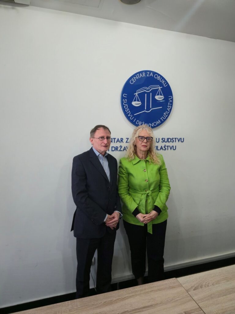 – 13. mart 2026. godine – Podgorica, Predsjednica Upravnog odbora Centra za obuku u sudstvu i državnom tužilaštvu, gđa Ljiljana Lakić, direktorica Sekretarijata Centra, gđa Maša Adžić, načelnica Odjeljenja za kontinuiranu obuku, gđa Anita Kadić i načelnica Odjeljenja za međunarodnu saradnju i projekte, gđa Marina Radulović, održale su u prostorijama Centra sastanak sa predstavnicima EUROL 4 projekta (Podrška Evropske unije vladavini prava u Crnoj Gori), dr Ričardom Regnerom, rukovodiocem projektnog tima, g. Vladimirom Simonovićem i gđom Snežanom Špindler, pravnim savjetnicima u okviru projekta i gđom Milicom Vučinić, prevoditeljkom. Na sastanku su predstavljene dosadašnje aktivnosti i ciljevi projekta, uz naglasak da se projekat nadovezuje na rezultate prethodnih faza podrške vladavini prava u Crnoj Gori kroz projekte EUROL I, II i III, te da će biti usmjeren na dalju podršku reformama u sektorima pravosuđa i bezbjednosti, u bliskoj koordinaciji sa drugim inicijativama u oblasti vladavine prava. Istaknuto je da projekat finansira Evropska unija, dok ga sprovodi AED – Agencija za ekonomsku saradnju i razvoj u saradnji sa Ministarstvom pravde Slovenije, Ministarstvom pravde Hrvatske i Ministarstvom unutrašnjih poslova Bavarske. Opšti cilj projekta jeste pružanje podrške pripremi Crne Gore za pristupanje Evropskoj uniji, kroz pružanje pomoći u usklađivanju i djelotvornoj primjeni pravne tekovine i standarda Evropske unije u oblasti pravde i bezbjednosti, u skladu sa novom metodologijom proširenja. Sagovornici su posebno naglasili da je projekat usmjeren na jačanje efikasnosti i učinka pravosuđa, unapređenje kapaciteta institucija u borbi protiv korupcije na visokom nivou i organizovanog kriminala, kao i na ostvarivanje mjerljivih rezultata u složenim predmetima organizovanog kriminala, uključujući finansijske istrage, pranje novca, krijumčarenje i oduzimanje imovinske koristi stečene kriminalnom djelatnošću. Aktivnosti projekta usmjerene su i na ispunjavanje završnih mjerila u pregovaračkim poglavljima 23 i 24, kao i na jačanje apsorpcionih kapaciteta institucija korisnica. Tokom sastanka je takođe istaknuto da će posebna pažnja biti usmjerena na podršku u sprovođenju ključnih pravosudnih reformi u cilju jačanja nezavisnosti sudstva i samostalnosti tužilaštva, kao i unapređenja nepristrasnosti, odgovornosti, efikasnosti i profesionalnosti nosilaca pravosudnih funkcija. Ova komponenta obuhvata i jačanje kapaciteta pravosudnih institucija i institucija za sprovođenje zakona radi ispunjavanja zahtjeva pregovaračkog procesa za pristupanje Evropskoj uniji. U tom kontekstu, gđa Lakić je upoznala sagovornike sa prioritetnim potrebama institucije u pogledu ekspertske i tehničke podrške u okviru preostalih aktivnosti koje se odnose na pregovaračko poglavlje 23, imajući u vidu ranije iskazanu spremnost projekta EUROL 4 da pruži sistemsku i ad hoc podršku institucijama u oblasti pravosuđa.